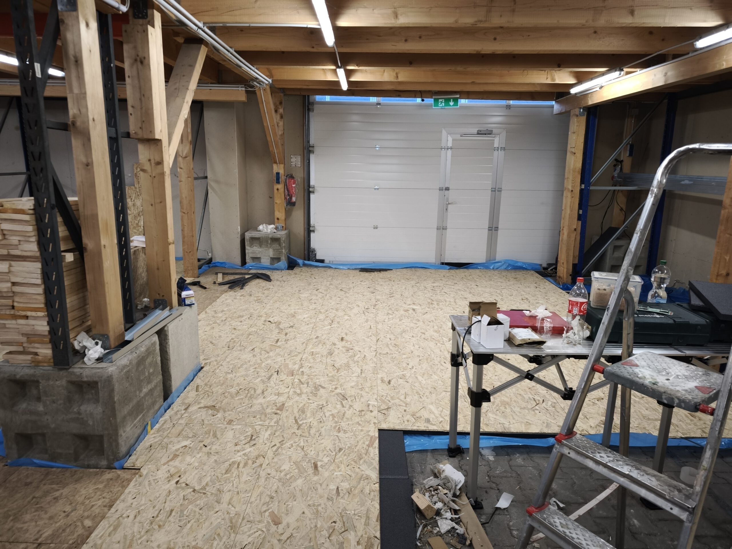 Wenn dann der OSB verlegt ist geht es los mit dem Trockenbau und schon bald begrüßen wir euch in unserem neuen Empfangsbereich.
