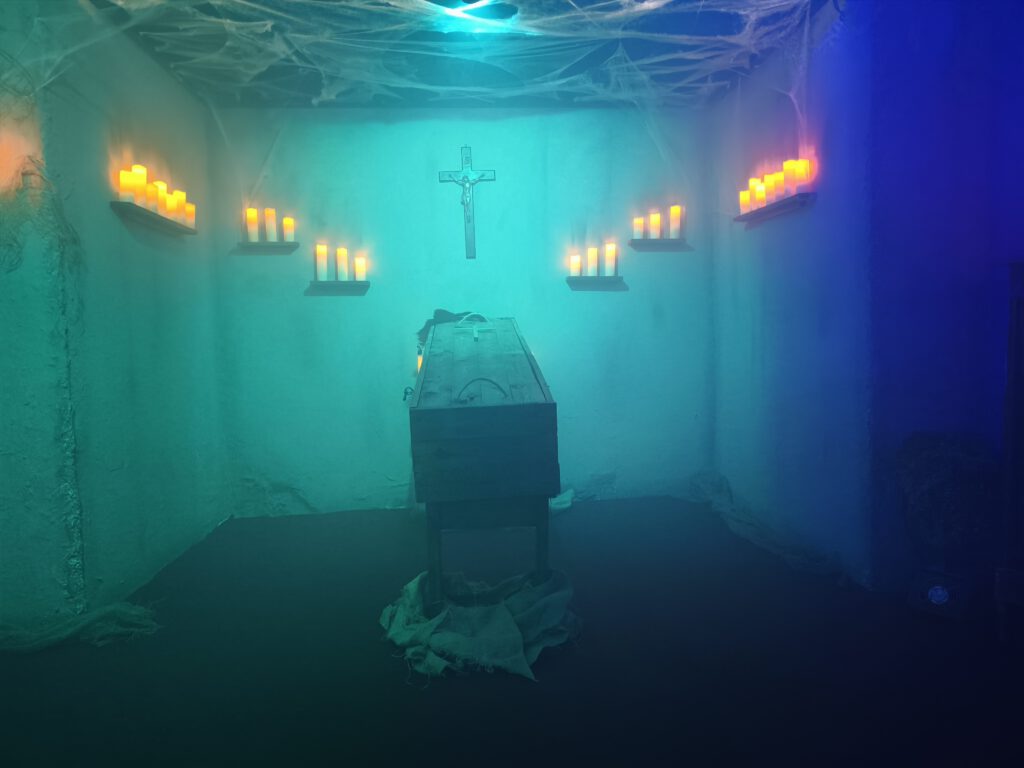 ARCANUM ist geeignet für Kinder ab 14 Jahren in Begleitung Erwachsener. Es werden Themen rund um den Tod inkl. Knochen und Särge vorkommen. Ungeeignet für Kinder-/ Jugendgeburtstage.