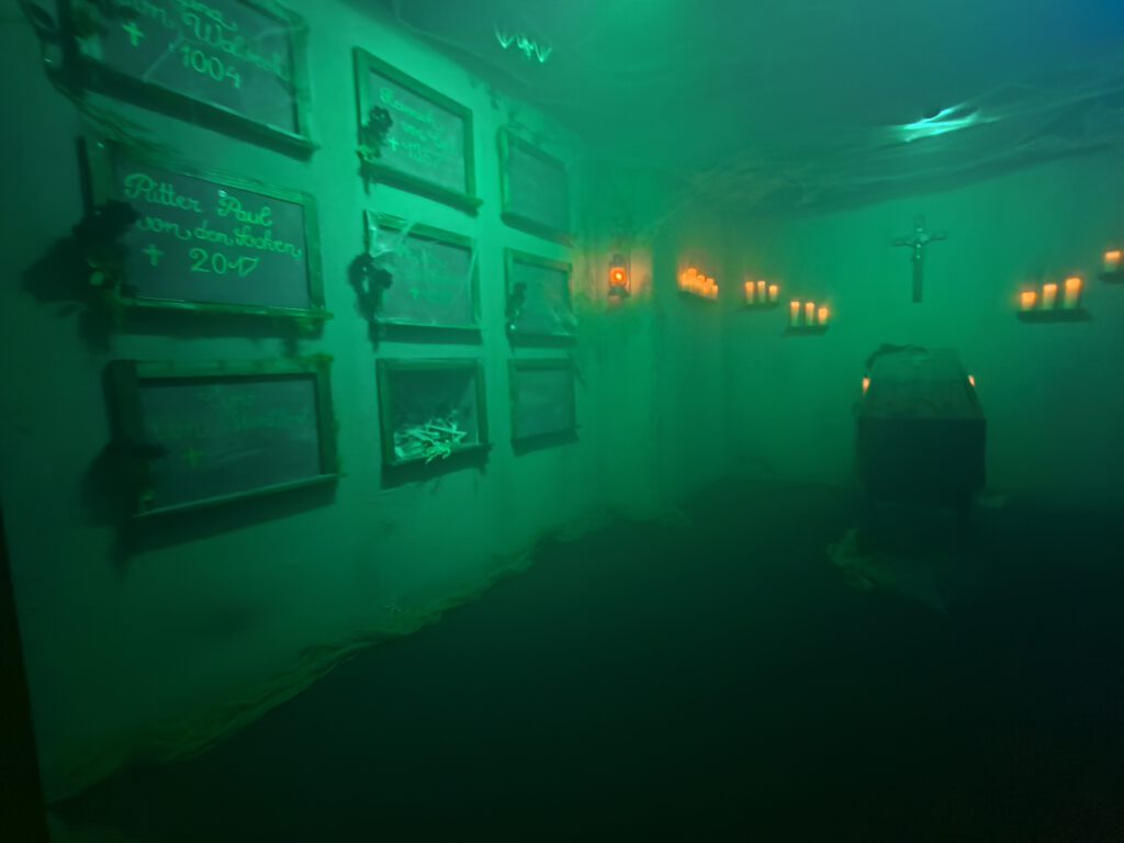 Die Idee, Planung und Umsetzung erfolgt in Eigenregie, wir arbeiten nicht mit zugekauften, elektronischen Spielen wie man sie von anderen Escape-Räumen kennt. Die Begleitung durch den Schauspieler, die analogen, selber entwickelten Spiele und die detailreiche Dekoration werden euch in ein unglaublich immersives Escape-Room Erlebnis entführen.